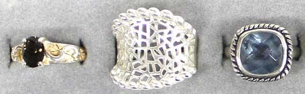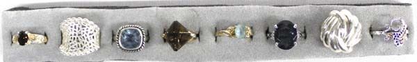 8 Rings, Some Sterling Silver, various sizes, largest measures 1''L