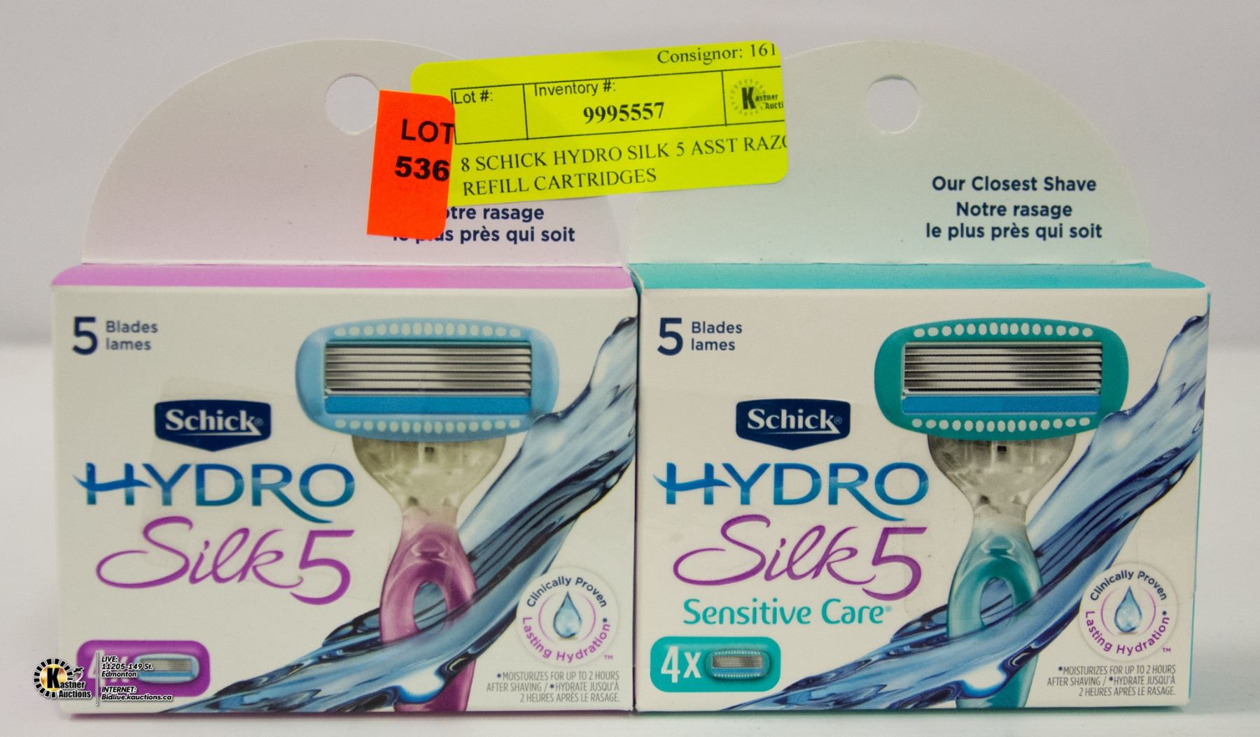 8 SCHICK HYDRO SILK 5 ASST RAZOR REFILL CARTRIDGES 5 BLADES, WATER ACTIVATED HYDRA-BOOST SERUM