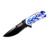 8" SERRATED STAINLESS STEEL BLUE FLAME DESIGN SPRING AS **|**|** 8" SERRATED STAINLESS STEEL BLUE FLAME DESIGN SPRING ASSISTED FOLDING KNIFE