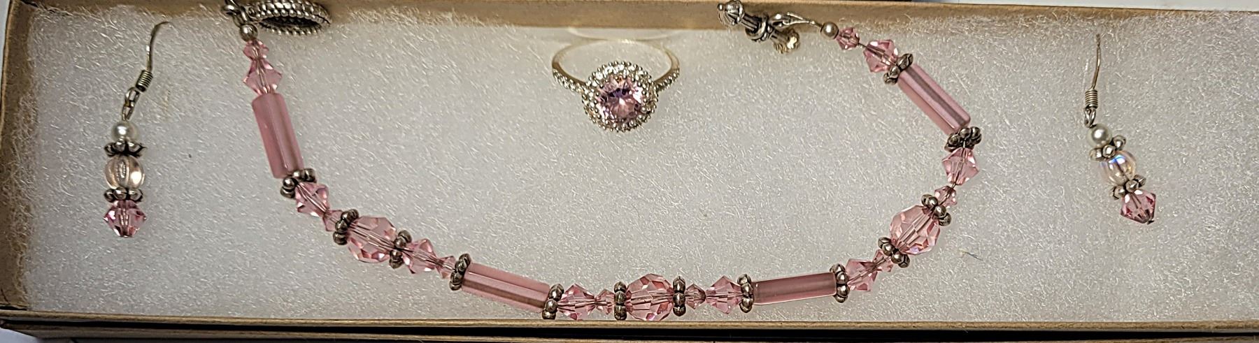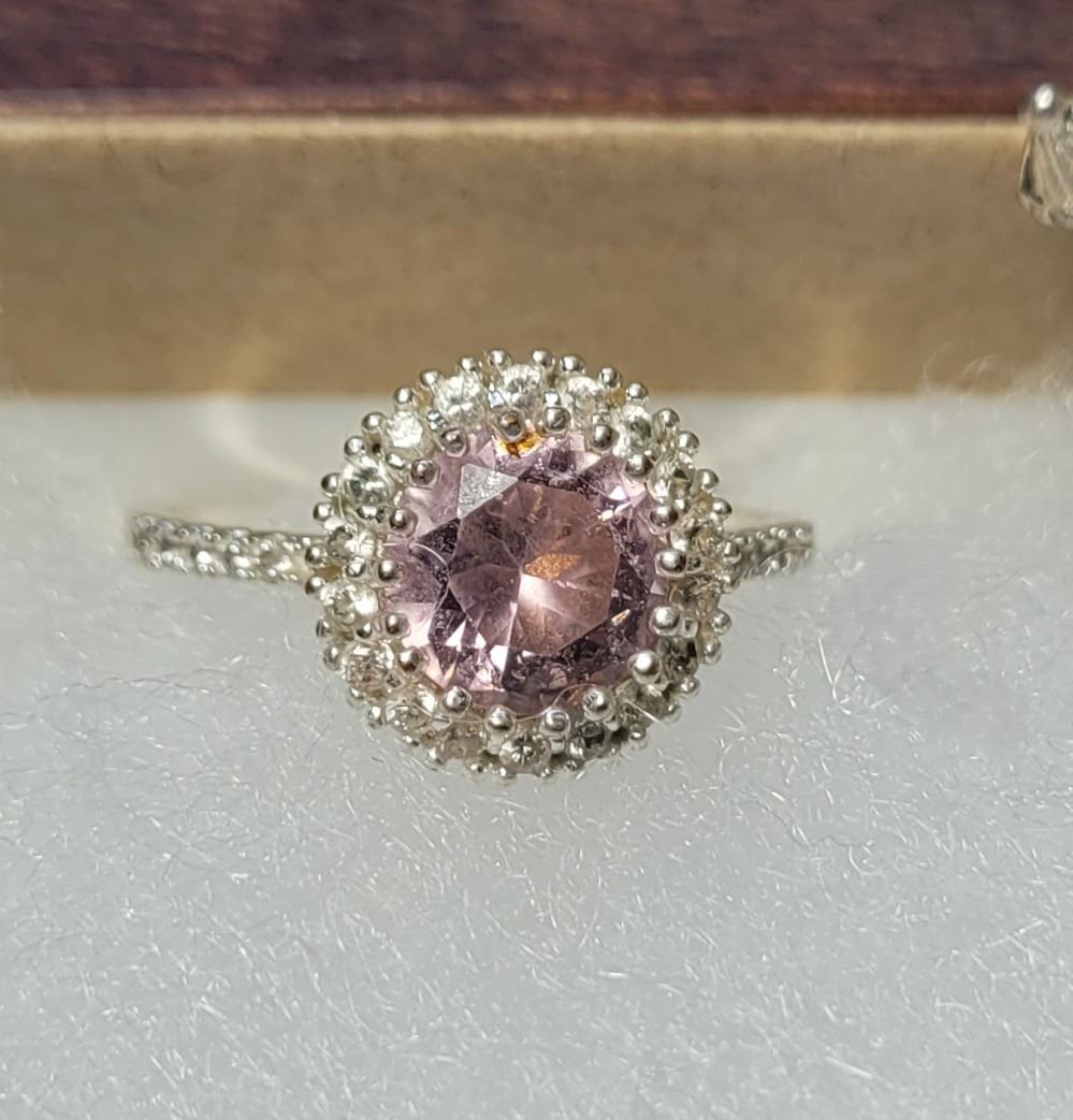 EARRINGS, 8" BRACELET & SIZE 8 HALO DESIGN RING. JEWELERY