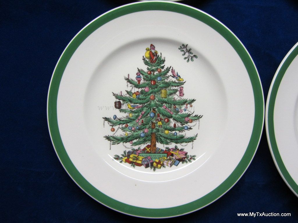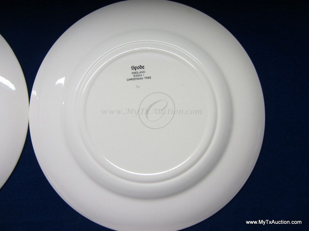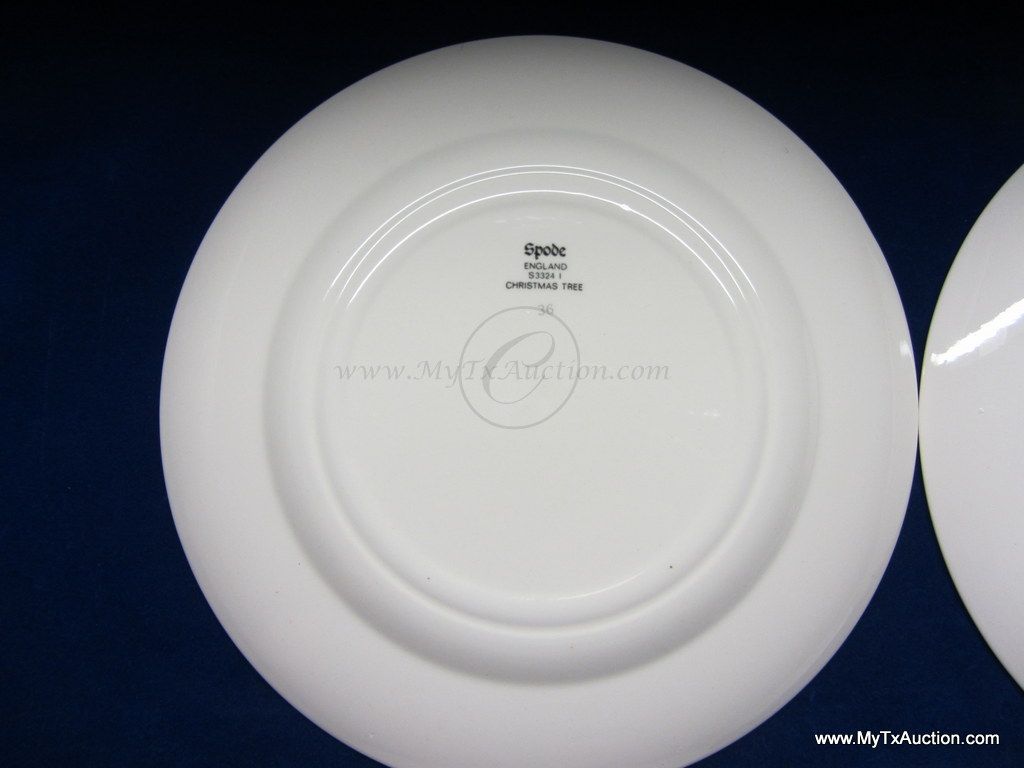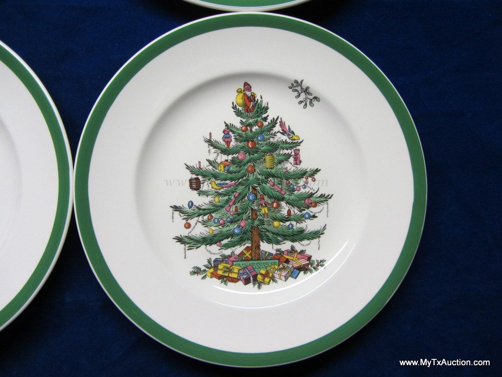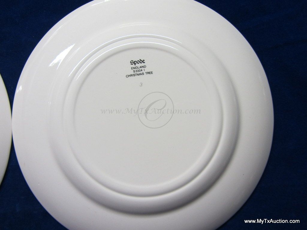 Spode Christmas Tree green trim 8" salad plates #S3324 I '1984'