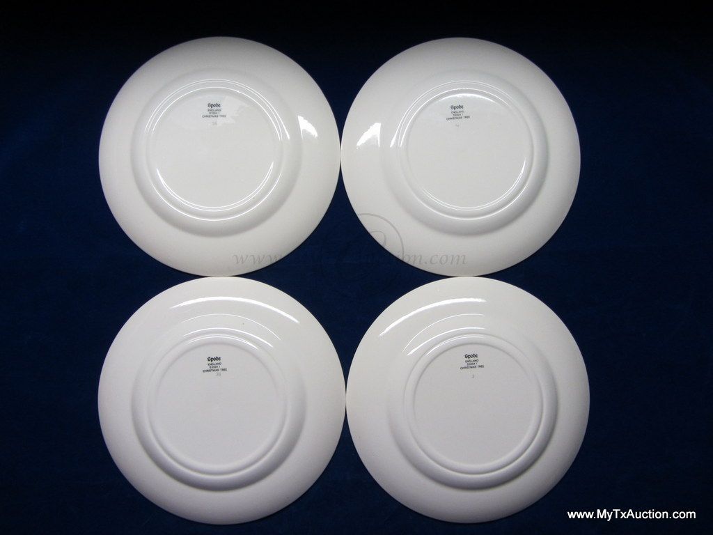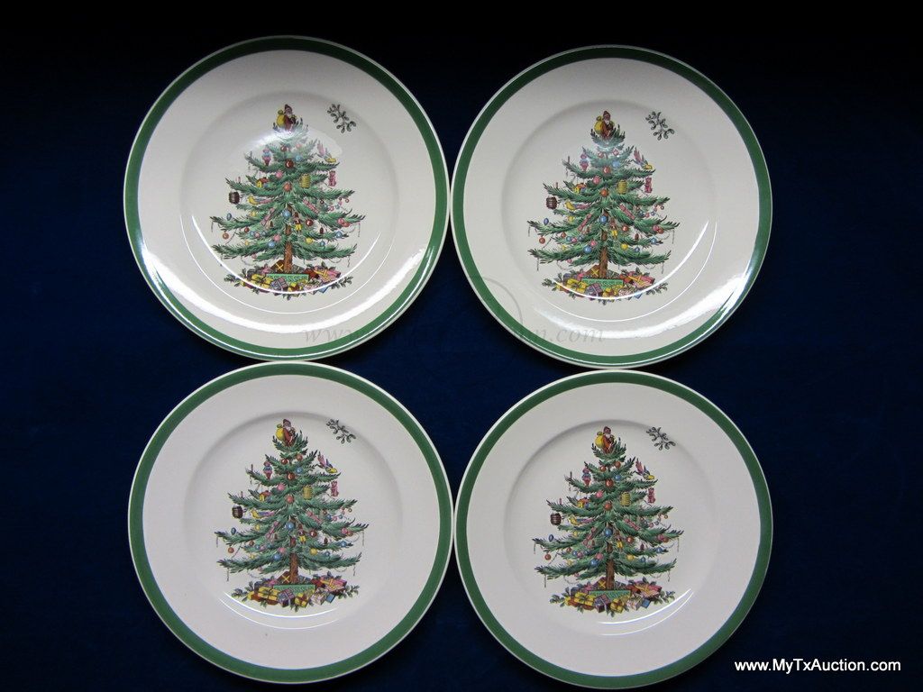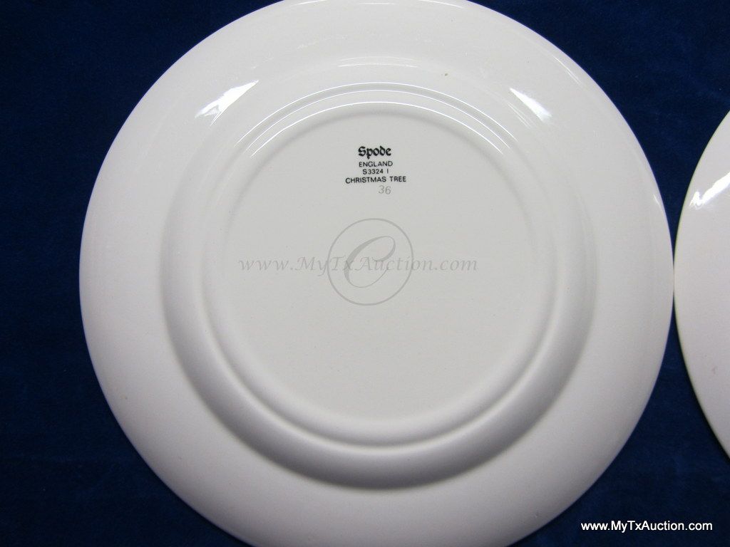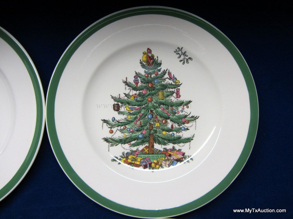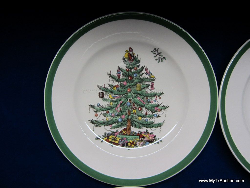 Spode Christmas Tree green trim 8" salad plates #S3324 I '1984'