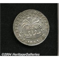 <B>8 Soles 1851FM,</B></I> KM109, fully lustrous BU. <BR><BR><B>Important notice:</B> Heritage usually auctions material at the rate of 200-250 lots per hour. On some occasions eBay Live bid software or the Internet may not be able to keep up with the pace of the auction. We recommend placing a realistic absentee bid now as insurance to avoid disappointment. Occasionally the auctioneer may eliminate or reject an eBay Live bid, and the auctioneer may also reopen a lot after the close of the eBay live bidding (usually because we missed an audience bid), and may reject your bid even if it shows you as the winning bidder. By bidding via eBay Live, you agree that Heritage may award the lot to another bidder at its sole discretion under the circumstances described above or any other reasonable circumstances. Since eBay bids are not shown to us until we open the lot on the floor, we treat those bids just like floor bids. In most cases the floor responds before the eBay bid is presented to us, due to Internet lag time, so for consistency we have made it a policy that floor bids are always considered first over tie eBay live bids. Also please note that all Heritage lots purchased through eBay Live carry a 20% Buyer's Premium. Please make sure you read the Terms and Conditions before you bid.