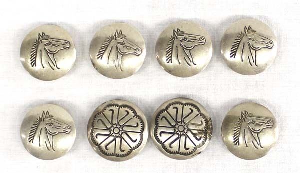 8 Southwestern Button Covers, measures .75''D, unsure if the tops are silver