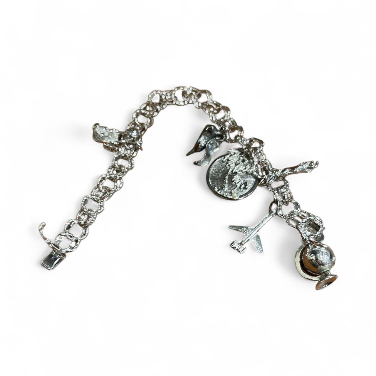 8" Sterling Silver Charm Bracelet with 6 Sterling Charms - Total weight: 30 grams