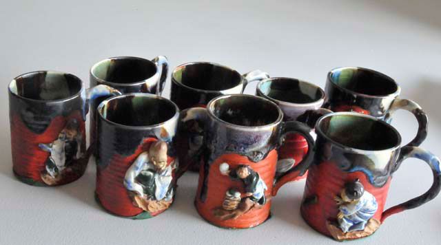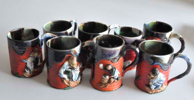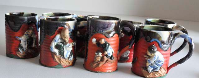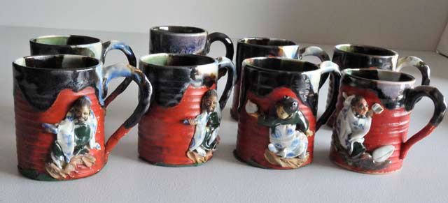 With Ban-ni Family mark, depicting various figures. Approx. 4" H. Please read our terms of sale.