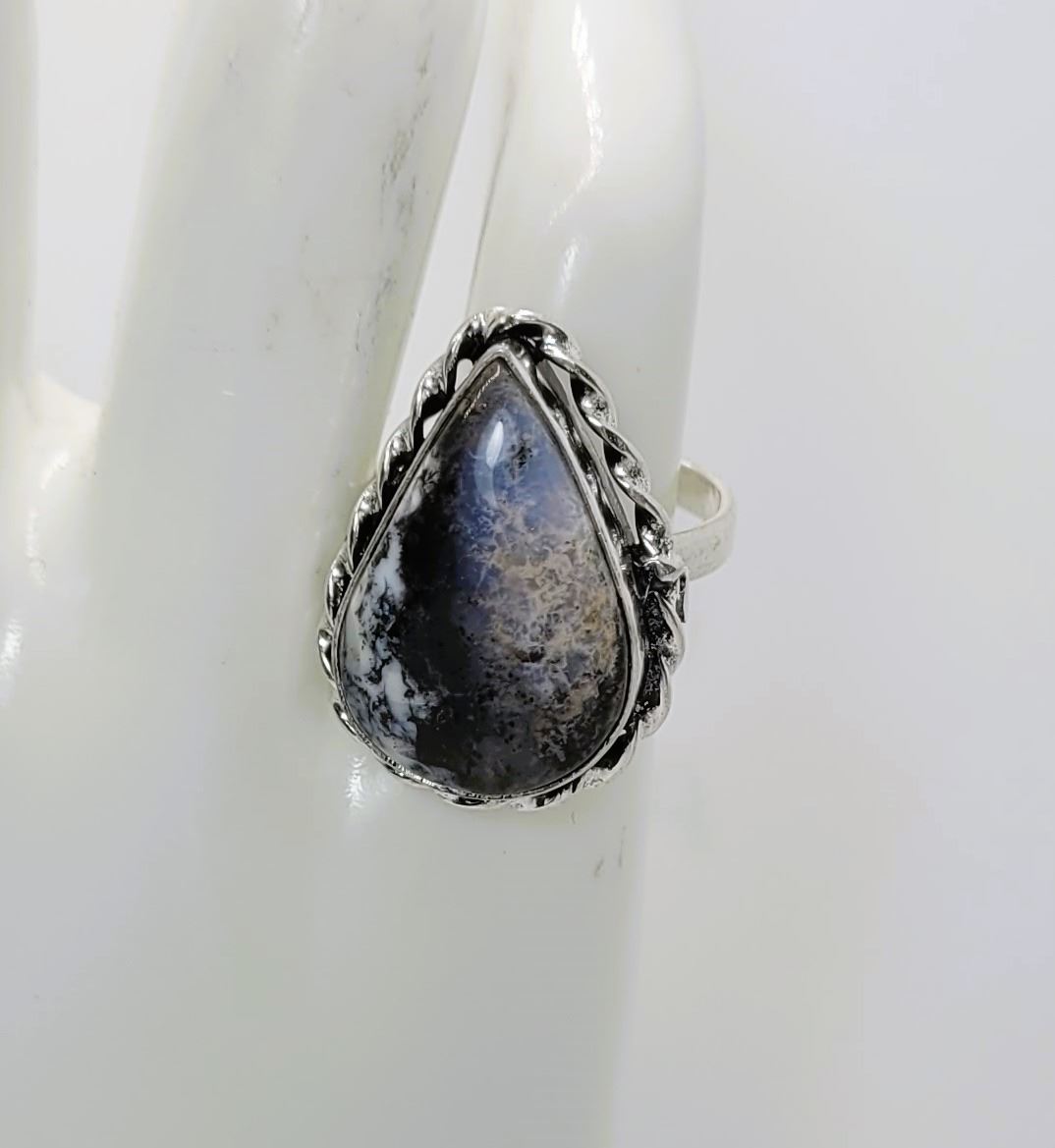 SIZE 6.5 NATURAL SODALITE RING, STAMPED 925 SILVER PLATE. JEWELLERY