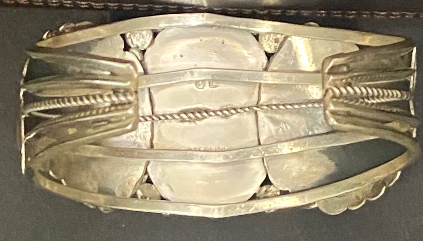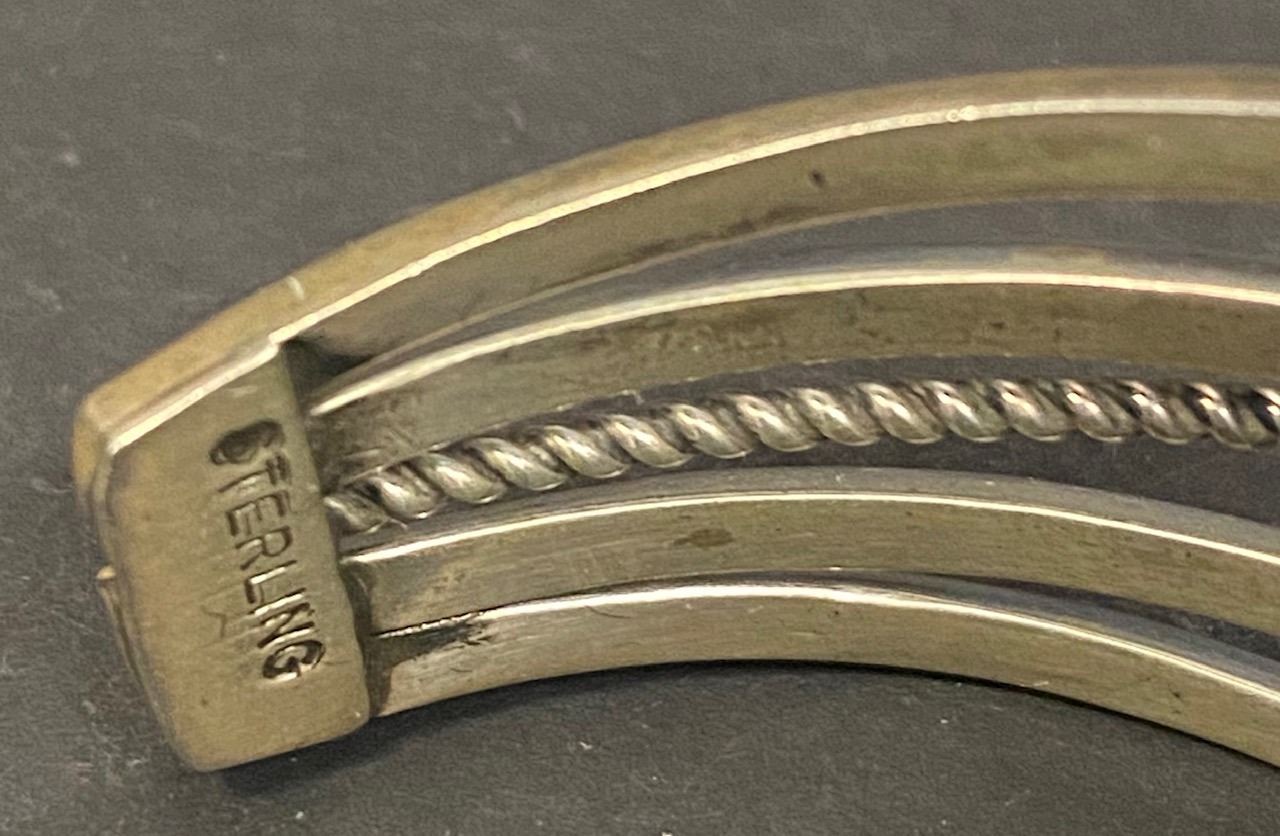 Bracelets measurements are opening, inside circumference, height. Weights are in Grams and are weighed to the best of our ability. The term signed means that, in our opinion, the signature is by the artist. All dating, Turquoise and hallmark attributions are to the best of our knowledge. Attributions are subjective and should be taken as such. Attributions in the description of any lot is left to the buyer to determine accuracy and the gallery is not responsible for any errors or omissions.