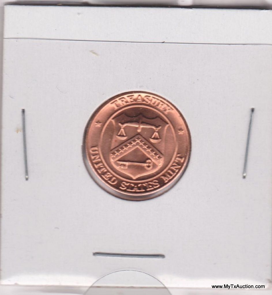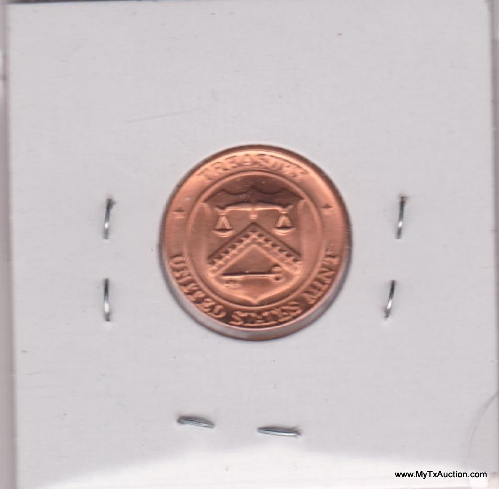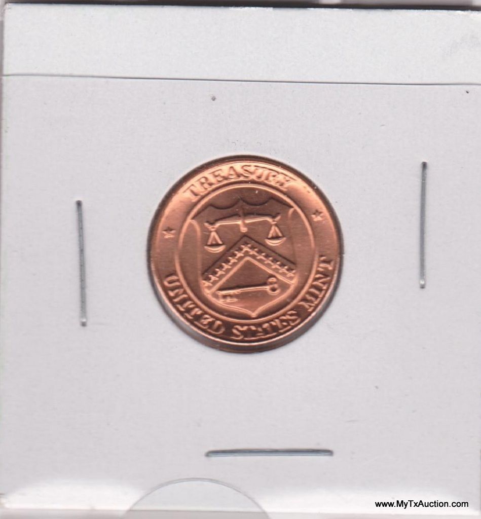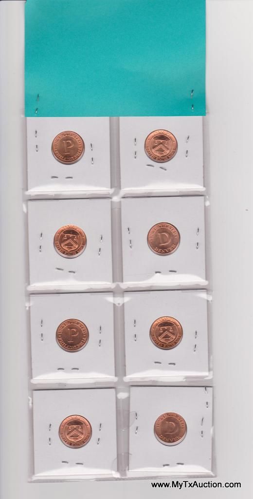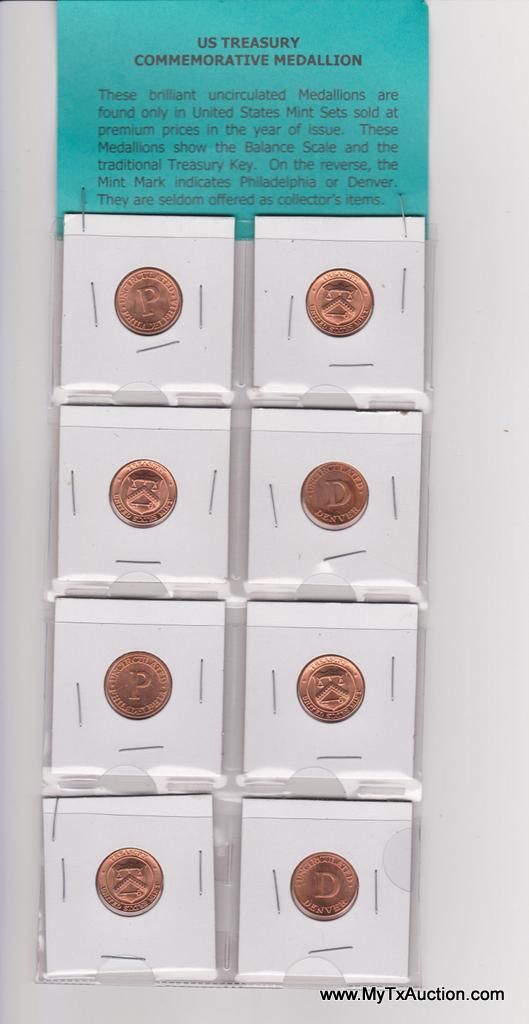 8-US Treasury Commemorative Medallions - Set of uncirculated U.S. Treasury Commemorative Medallions. The set features 4 Philadelphia & 4 Denver mint medallions. The set is a brillian uncirculated set and are only found in US mint sets. Obverse:Scale and treasury key, Letters:*TREASURY*UNITED STATES MINT Reverse:4-*UNCIRCULATED*D & 4-*UNCIRCULATED*P
