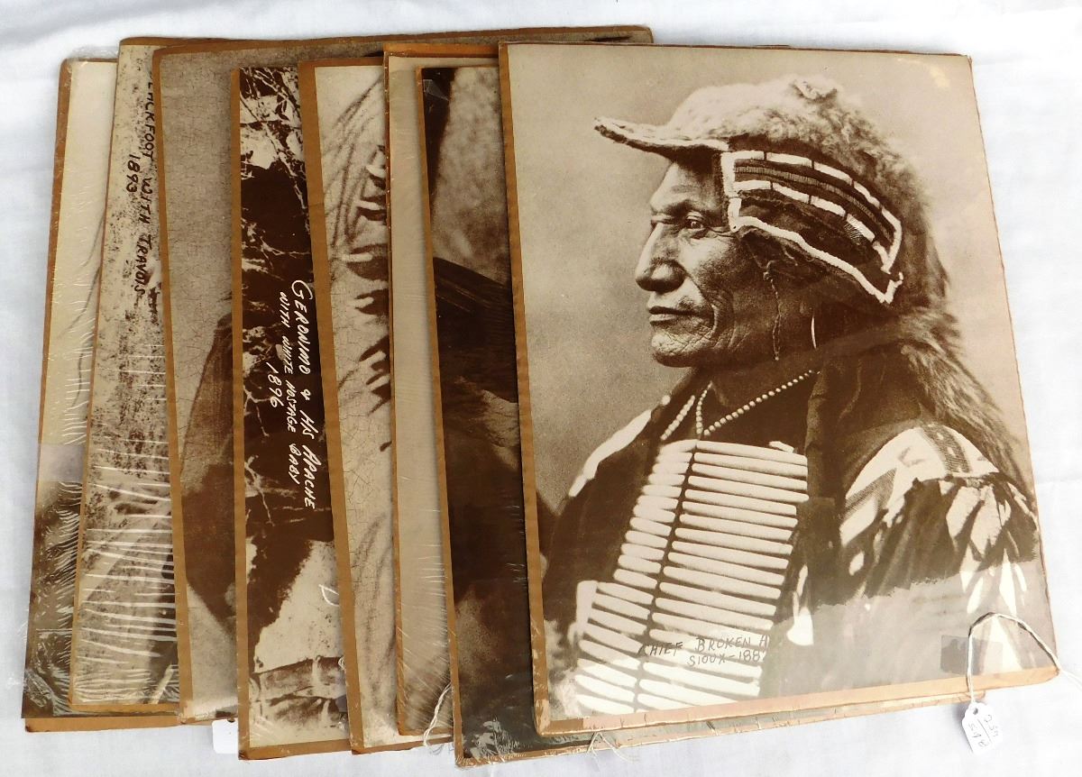 8 Unframed Photos of Native Americans, copies of 1800s photos. Made of paper, these measure about 14" x 11". Plains Indians depicted. All famous photos of famous Native Americans. Condition: Good, see images. Shipping: $15.50.