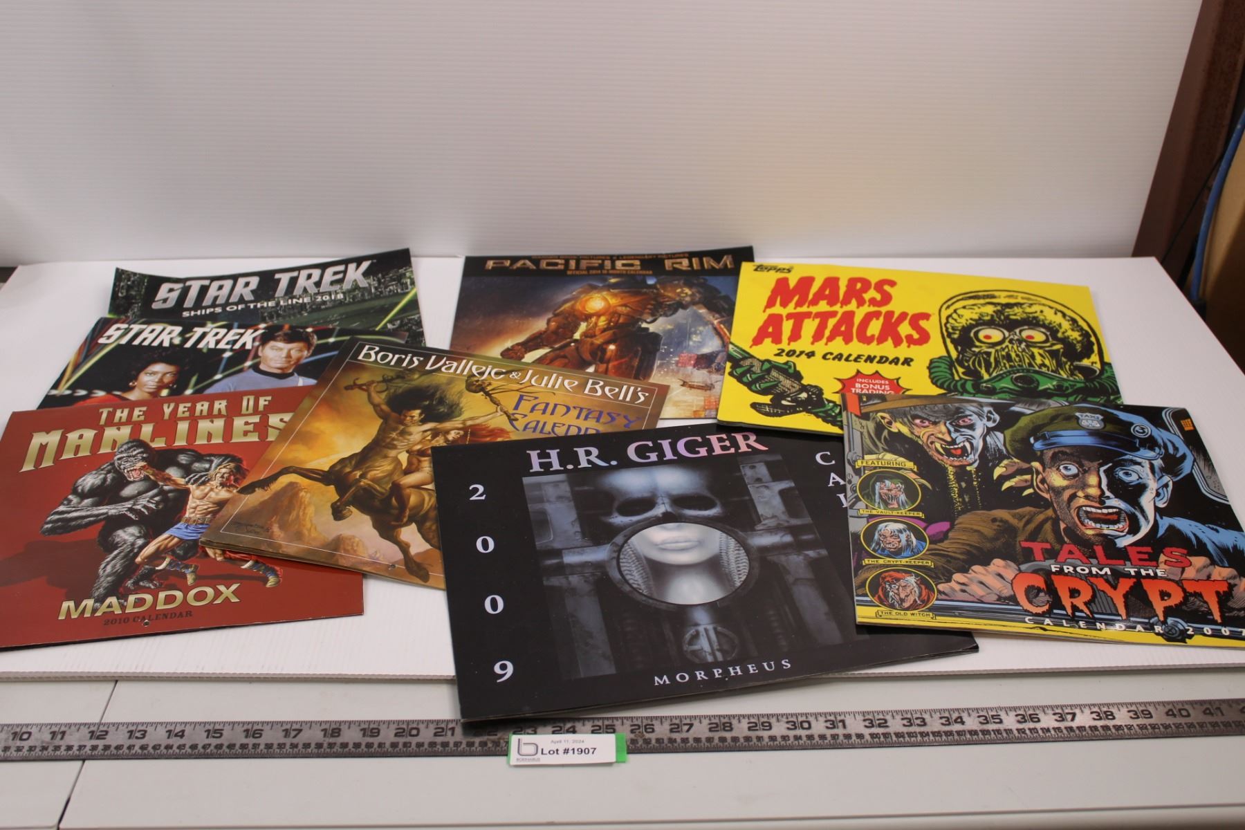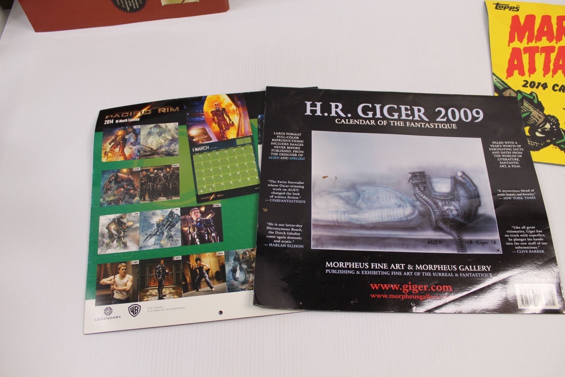 (8) Used Calendars of Varying Subject Matter - Star Trek, Fantasy, The Year of Manliness, Pacific Rim, Tales From The Crypt, Topps Mars Attacks& H.R Giger Morpheus