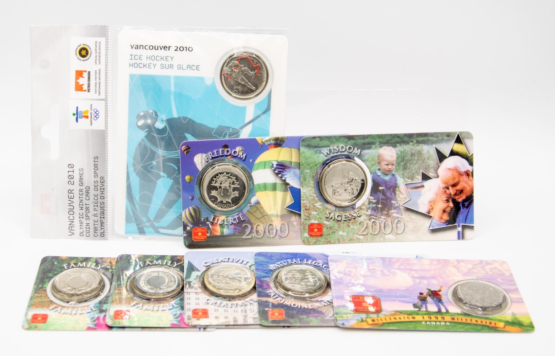 8 VARIOUS CANADIAN 25 CENT COINS SEALED CASE