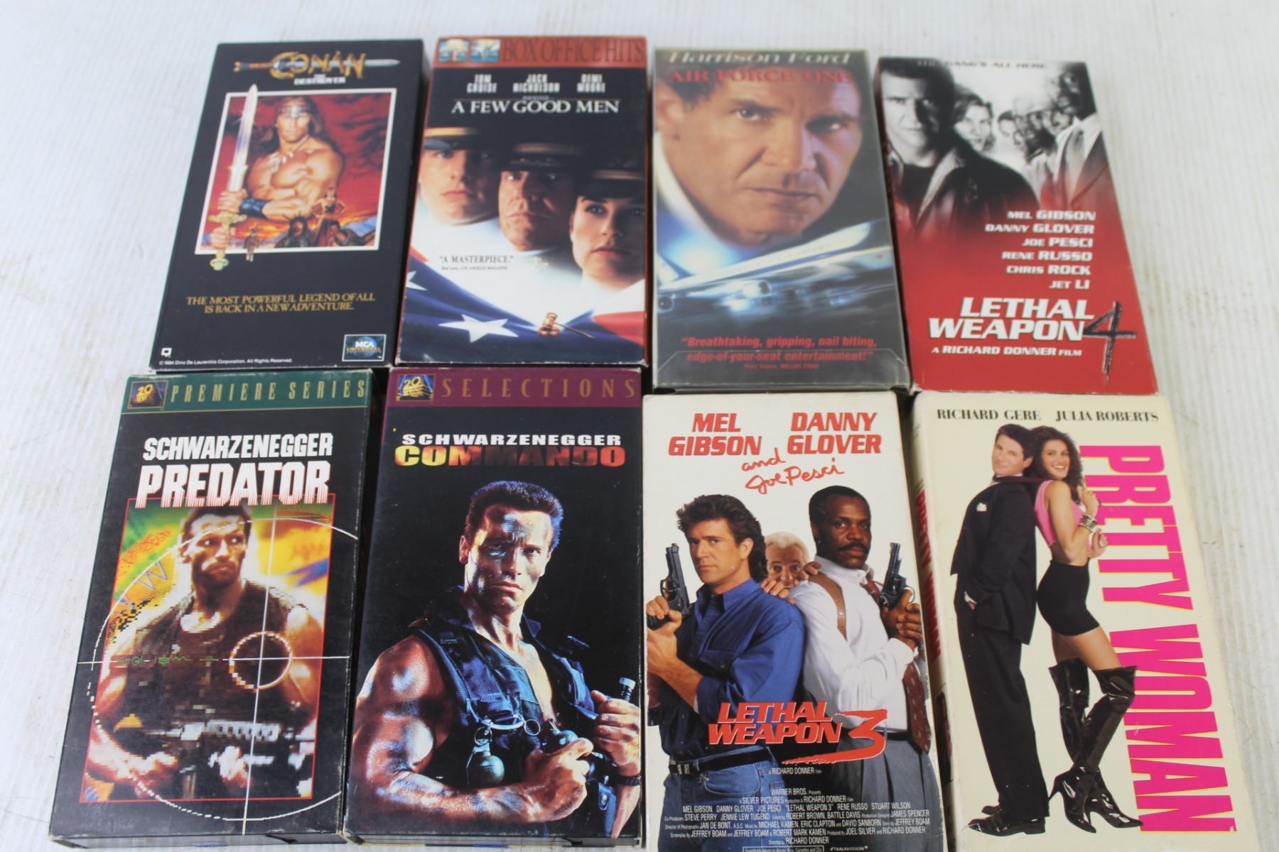 (8) VHS Tapes - Predator - Lethal Weapon - Pretty Woman - Conan