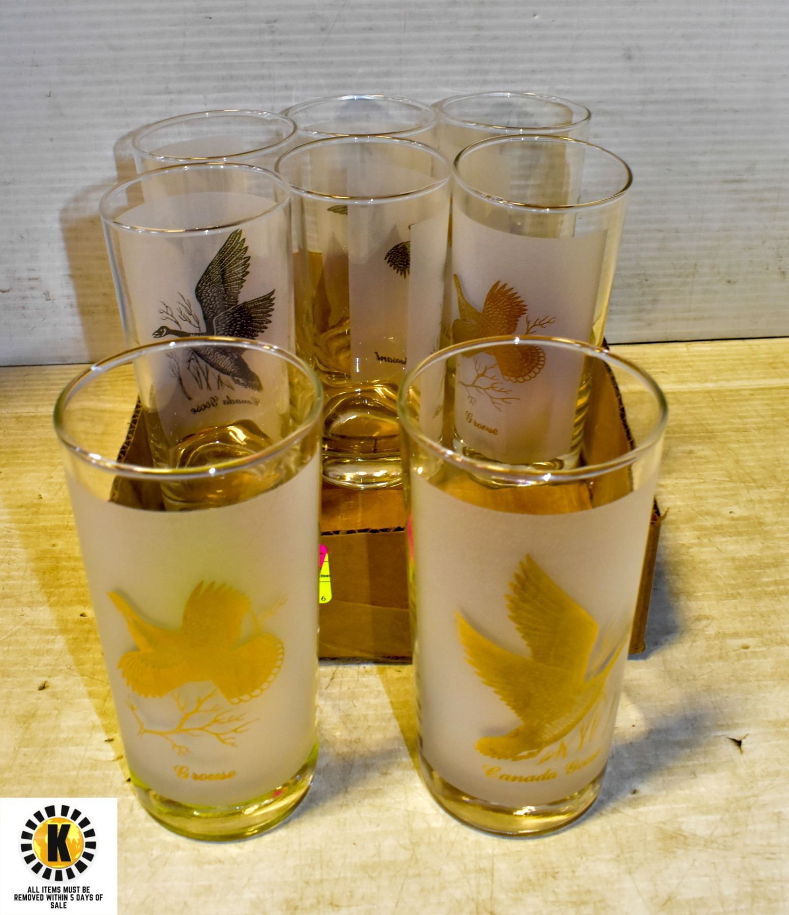 8 VINTAGE BIRD COCKTAIL GLASSES