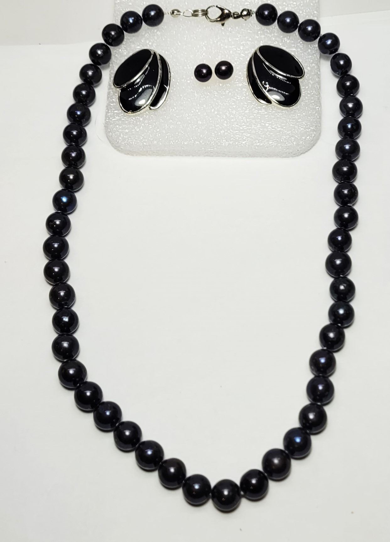 COORDINATING STUD EARRINGS, BLACK BEAD & BLACK & SILVER LEAVES