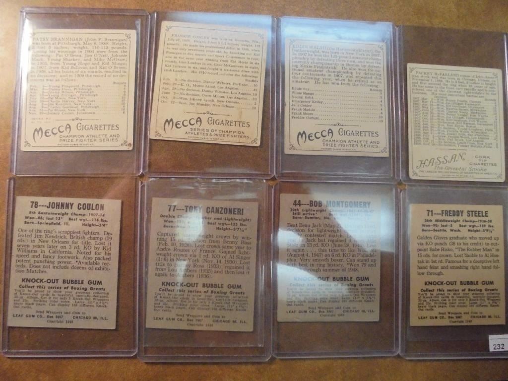 8 VINTAGE BOXING CARDS SEE DESCRIPTION 3-MECCA CIGARETTE CARDS, PATSY BRANNIGAN, FRANKIE CONLEY AND