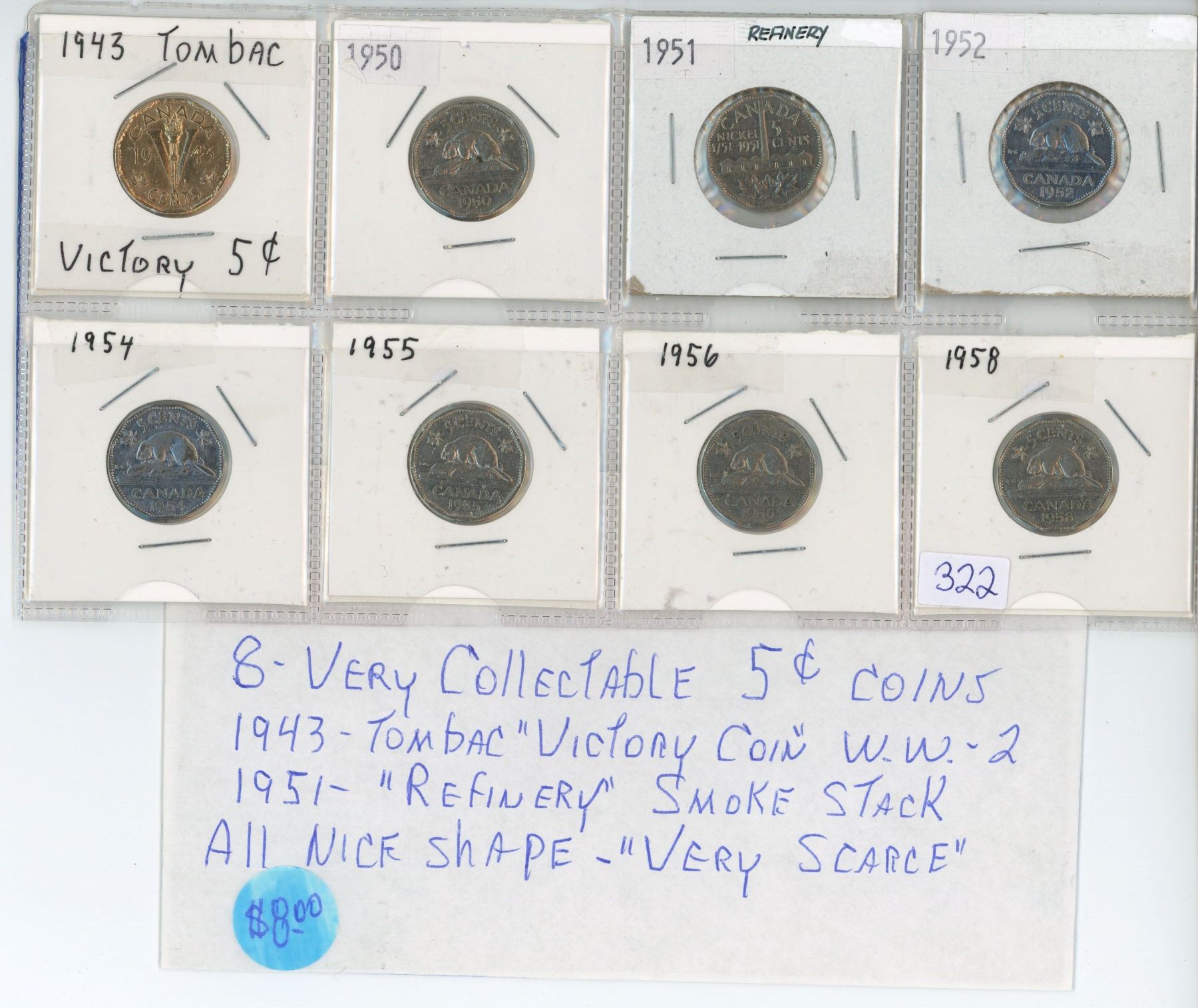 8 Various years, Canadian 5 cent coins