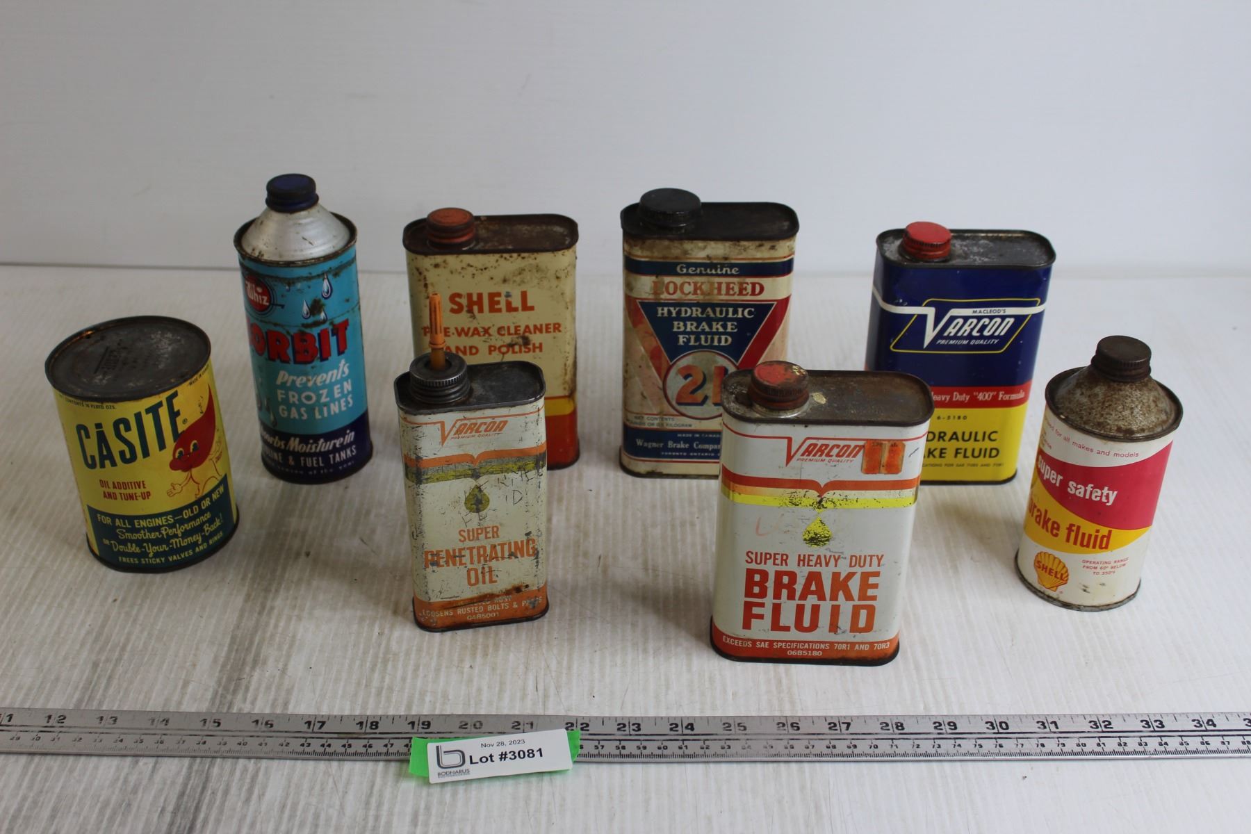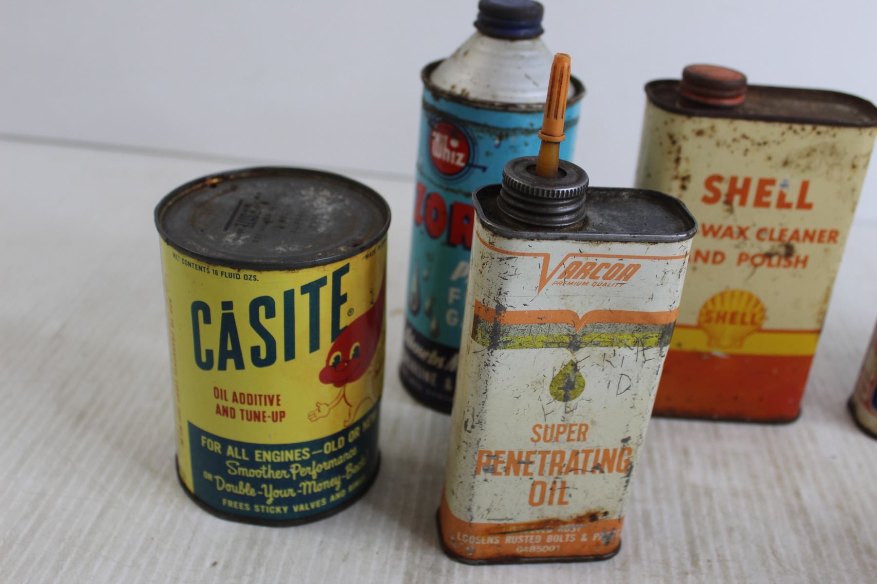 (8) Vintage Assorted Vehicle Fluid Tins - Shell, Casite, Varcon, Whiz
