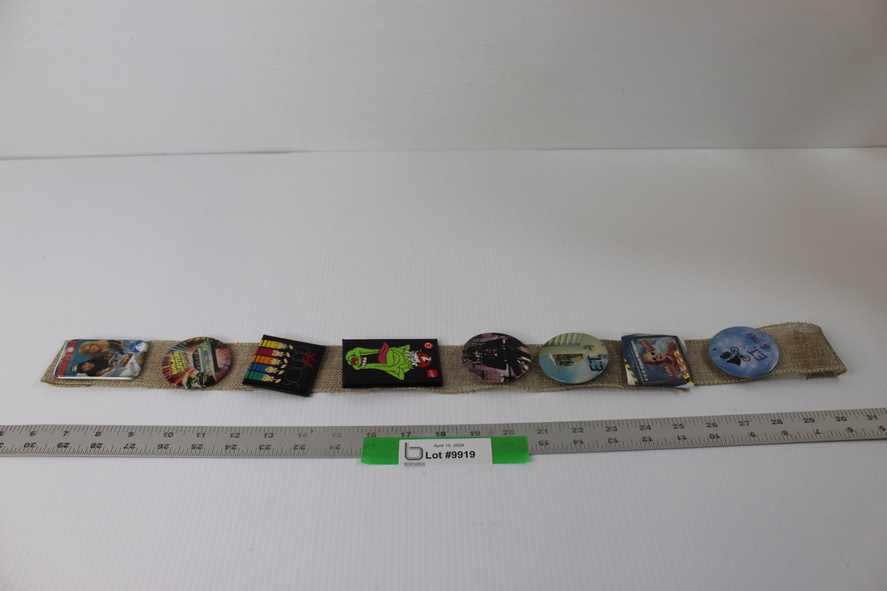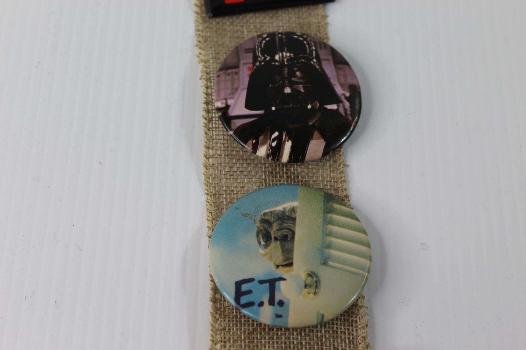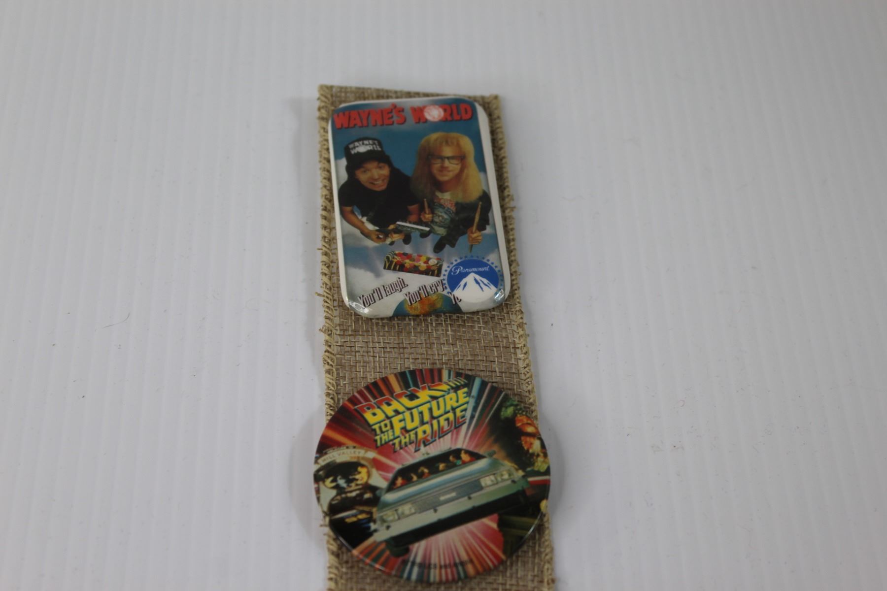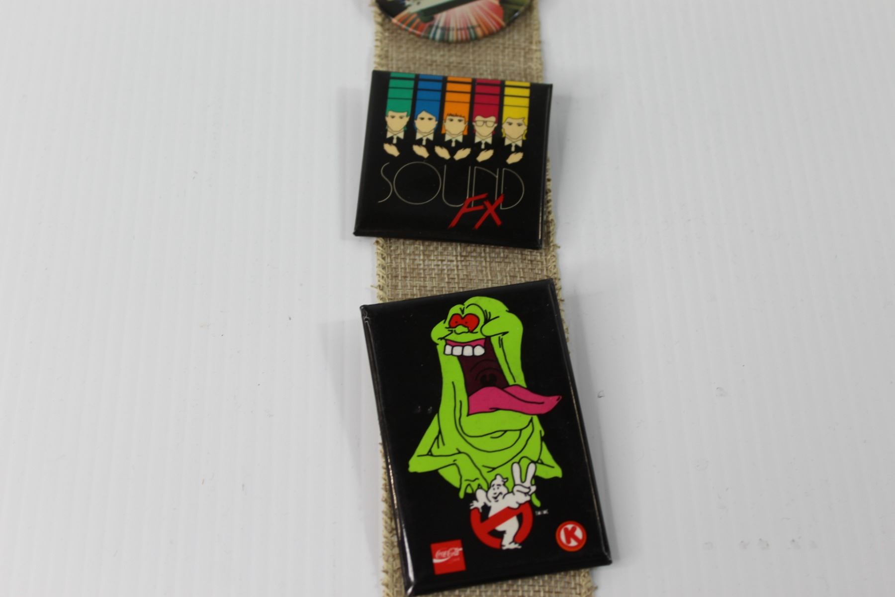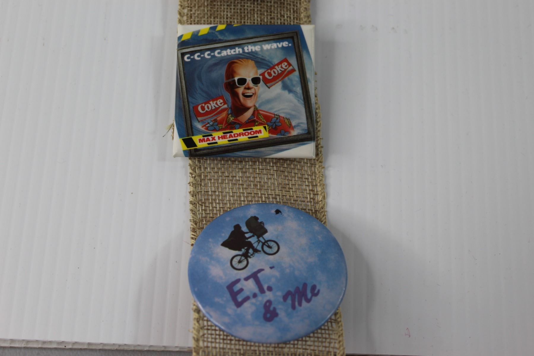 (8) Vintage Button Pins: Ghostbusters, E.T., Coke, Waynes World, Misc.