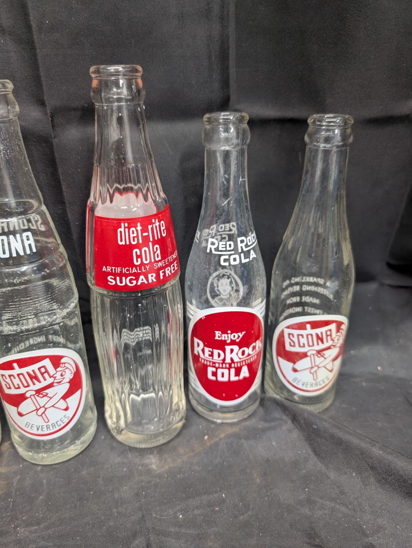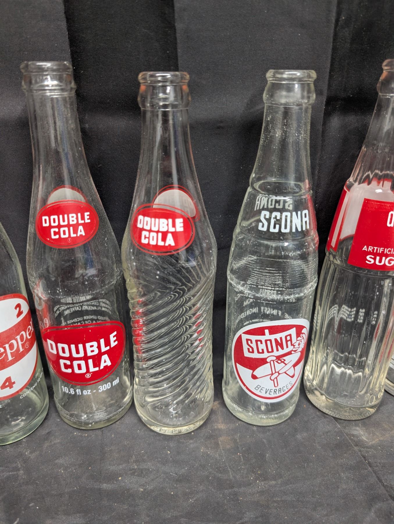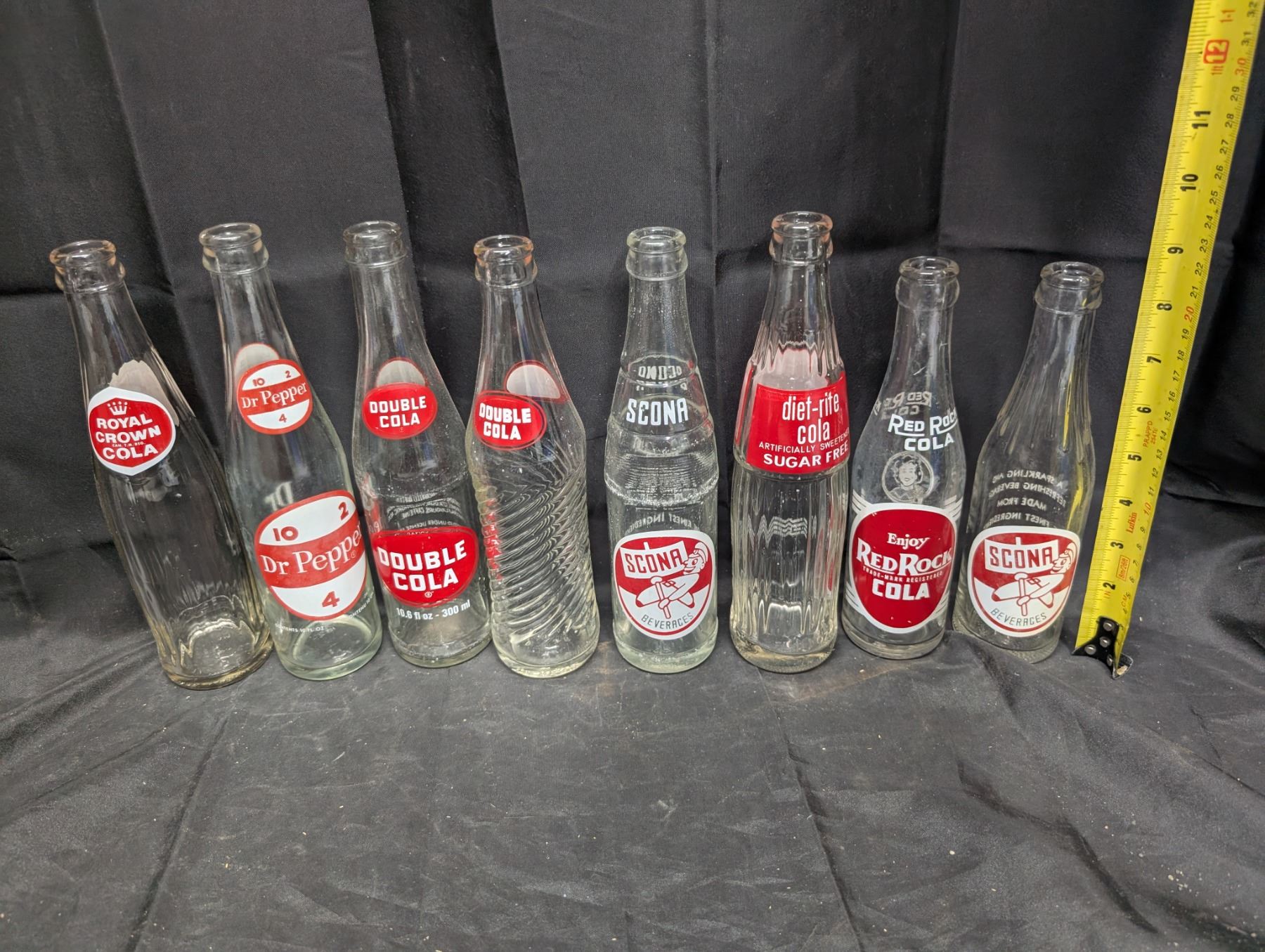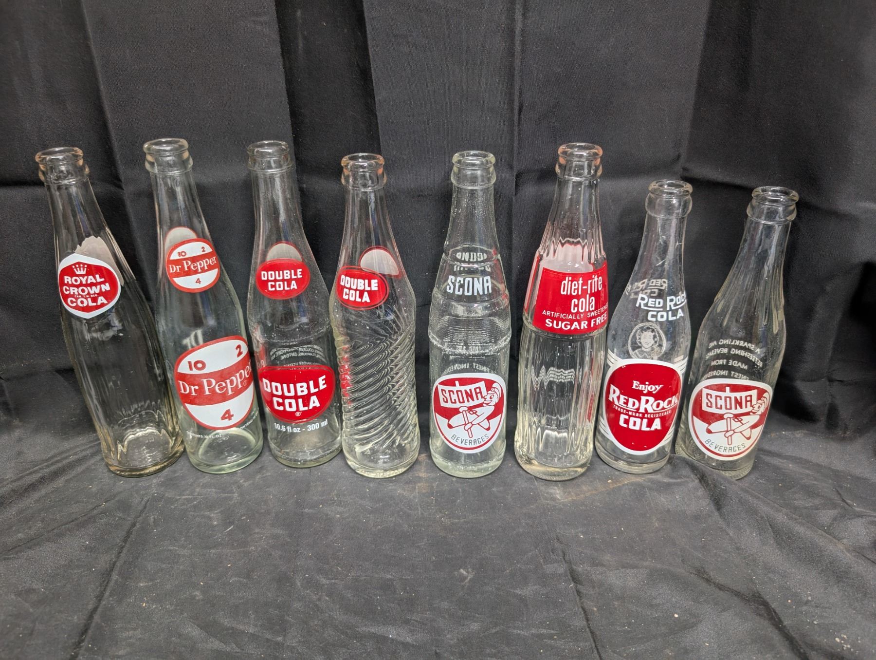 (8) Vintage Pop Bottles (Dr.Pepper, Scona, Double Cola, and etc.)