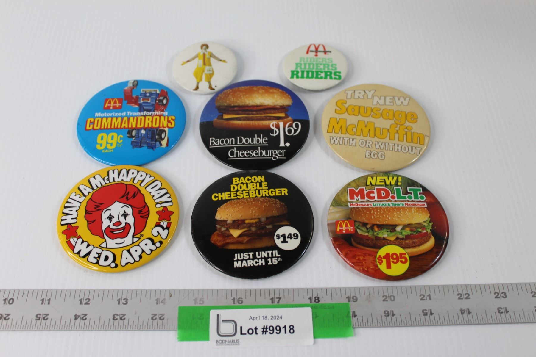 (8) Vintage Ronald McDonalds Promo Button Pins