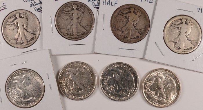 8 WALKING LIBERTY HALF DOLLARS (16,16-D,18-S,21-S,42,44,45,46) AG-AU