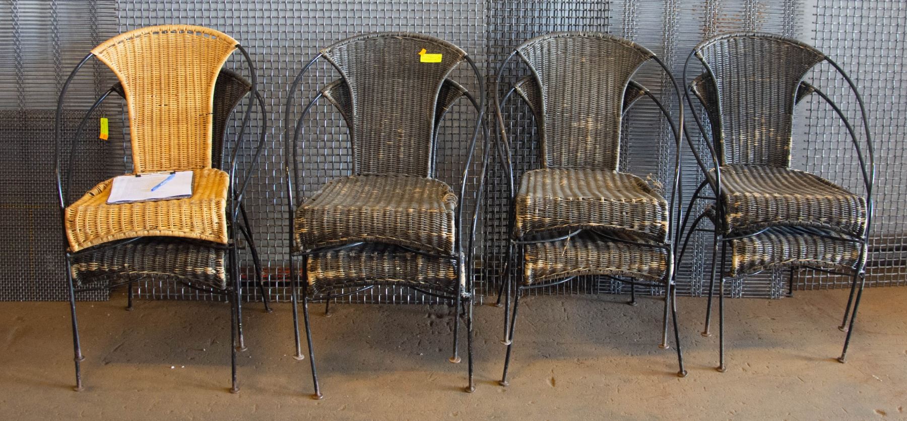 8 WICKER DINING CHAIRS *AS IS, SOME SEATS NEED