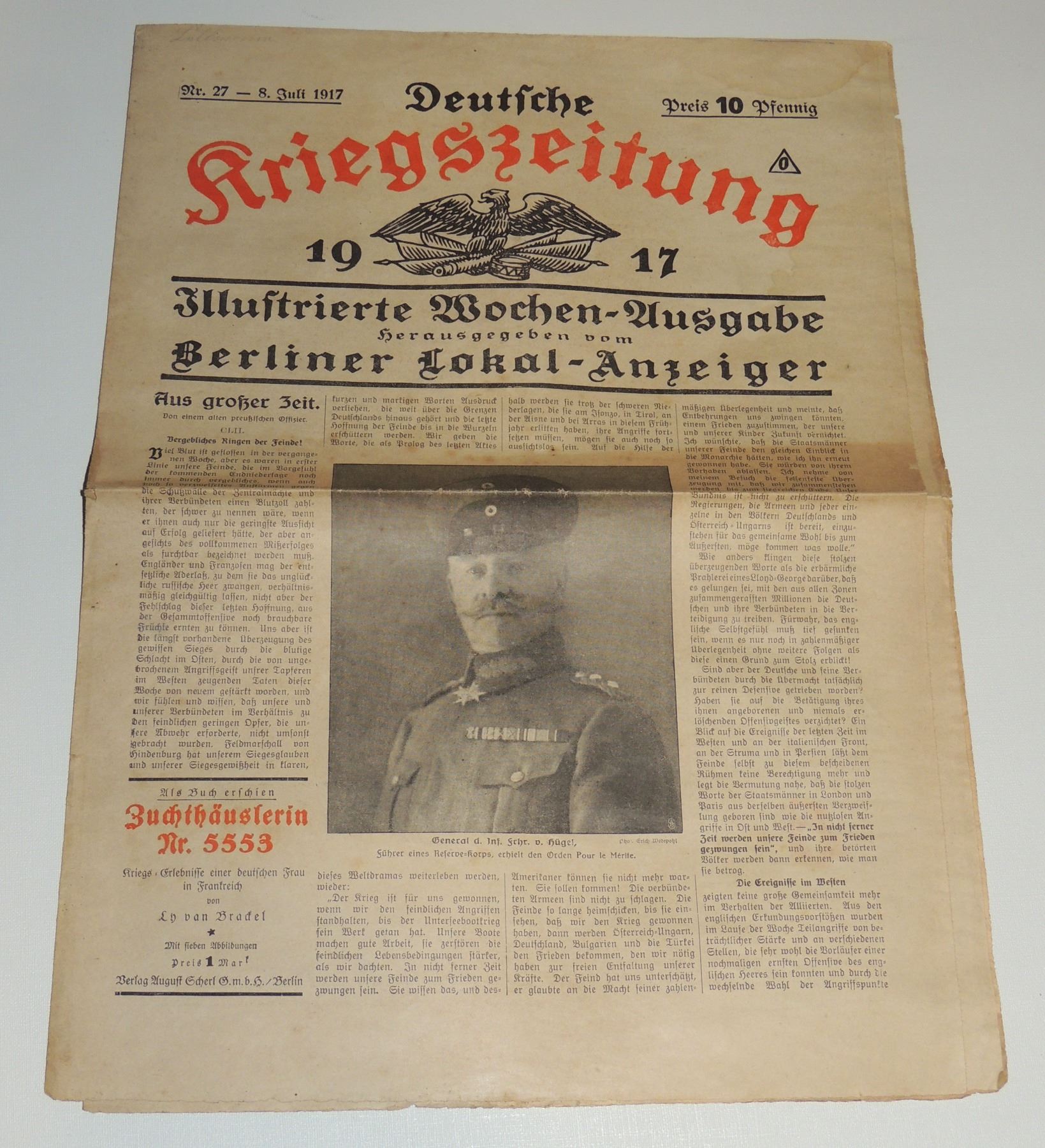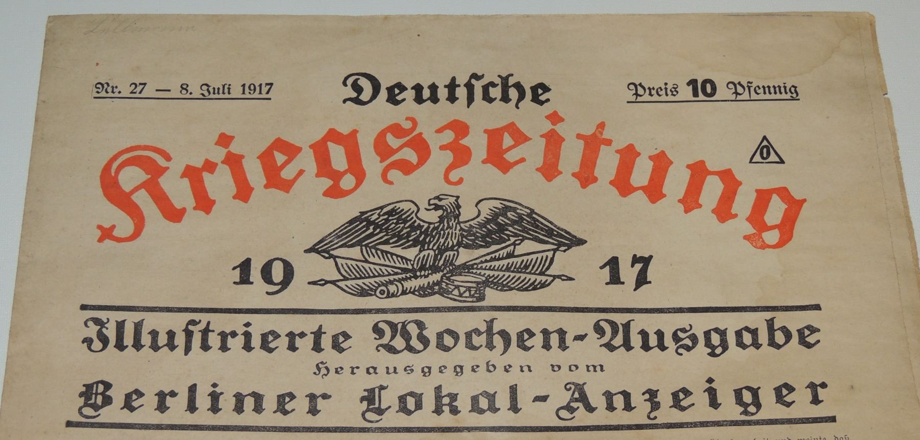 DEUTSCHE KRIEGSZEITUNG GERMAN WAR NEWSPAPER INCLUDES PHOTOS WORLD WAR ONE CENTRAL POWERS IMPERIAL GERMANY PRUSSIA NEWSPAPER