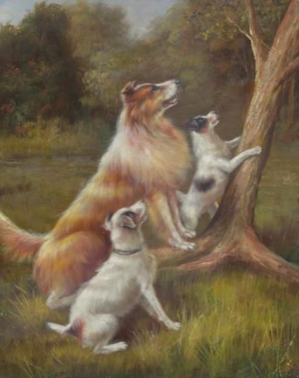 8 X 10 Oil on Board ~Dogs at Play~ FY311