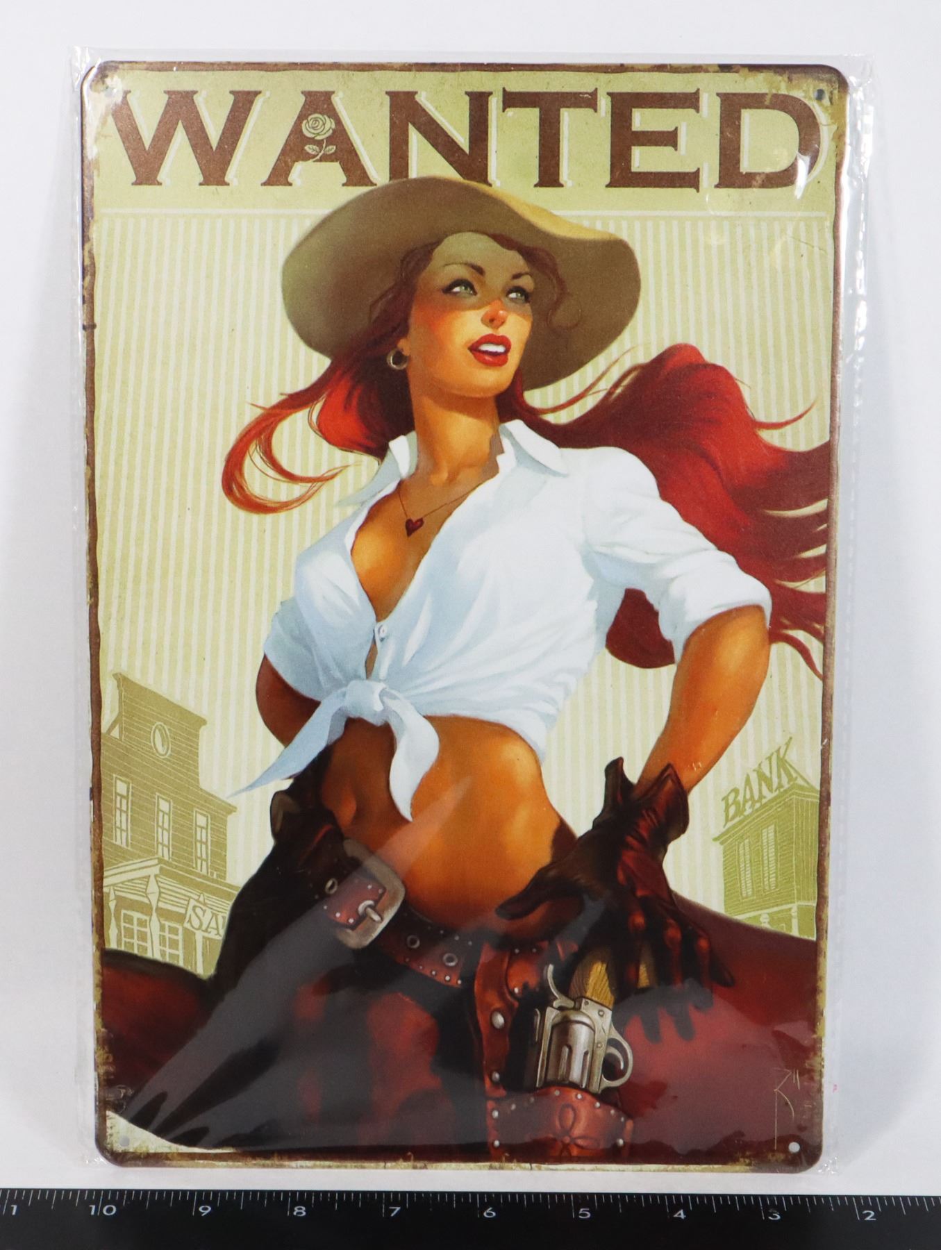 8" X 12" METAL WALL ART -"WANTED" COWGIRL