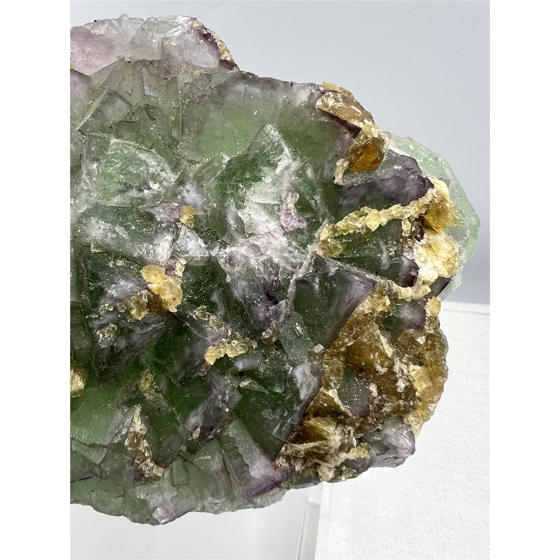 8 X 7 INCH RARE FORMATION PURPLE AND GREEN FLUORITE WITH BARITE ON STAND