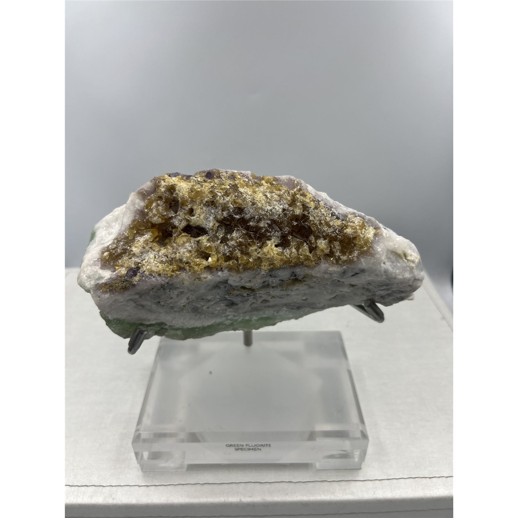 8 X 7 INCH RARE FORMATION PURPLE AND GREEN FLUORITE WITH BARITE ON STAND