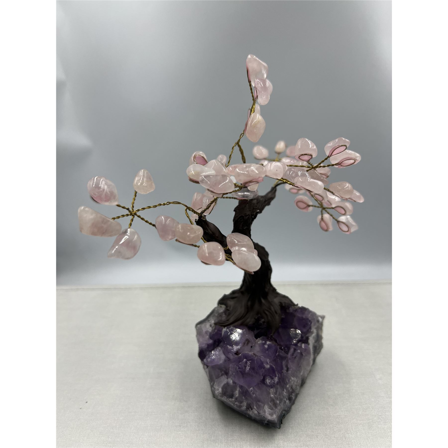 Handmade Rose Quartz Gemstone Tree w/ Amethyst Cluster base, 8 X 8" INCH tall.
