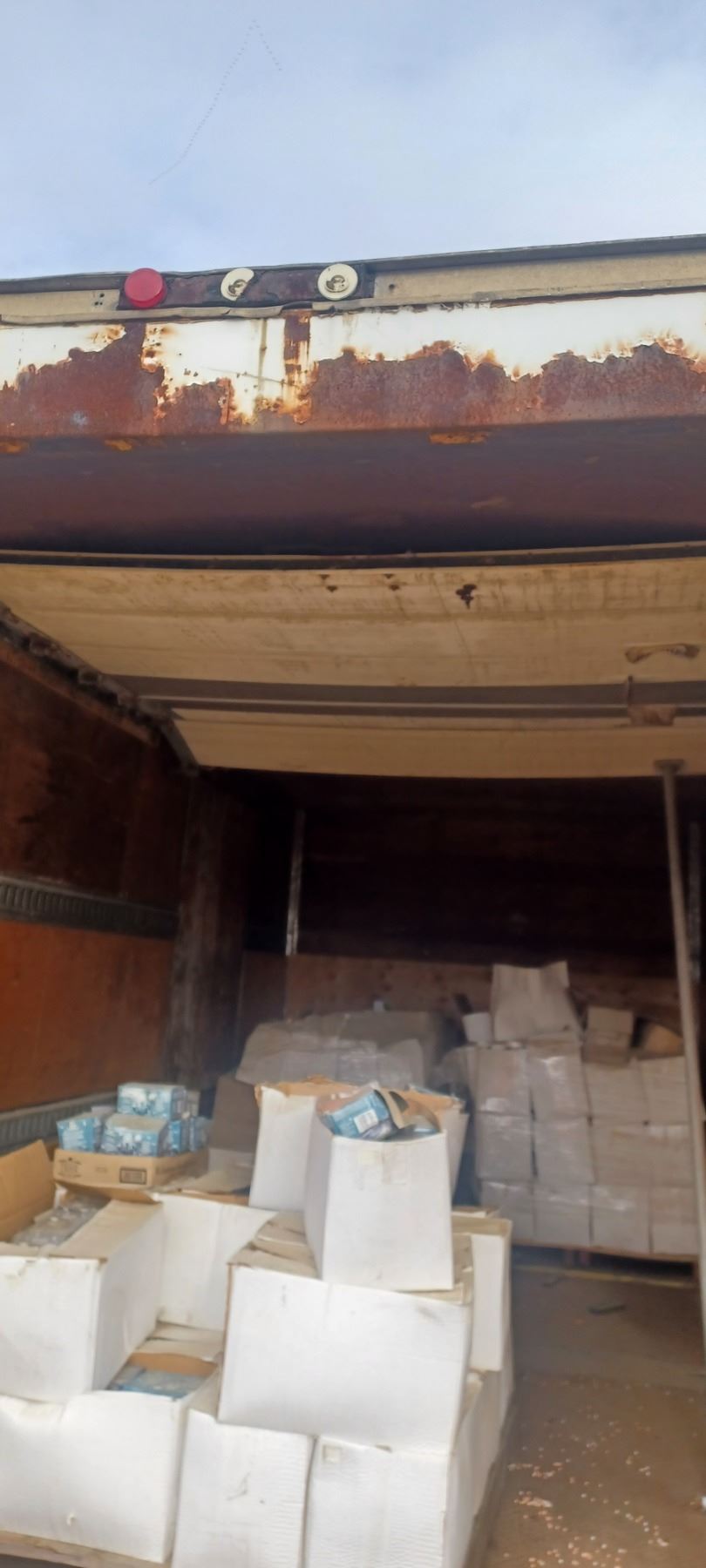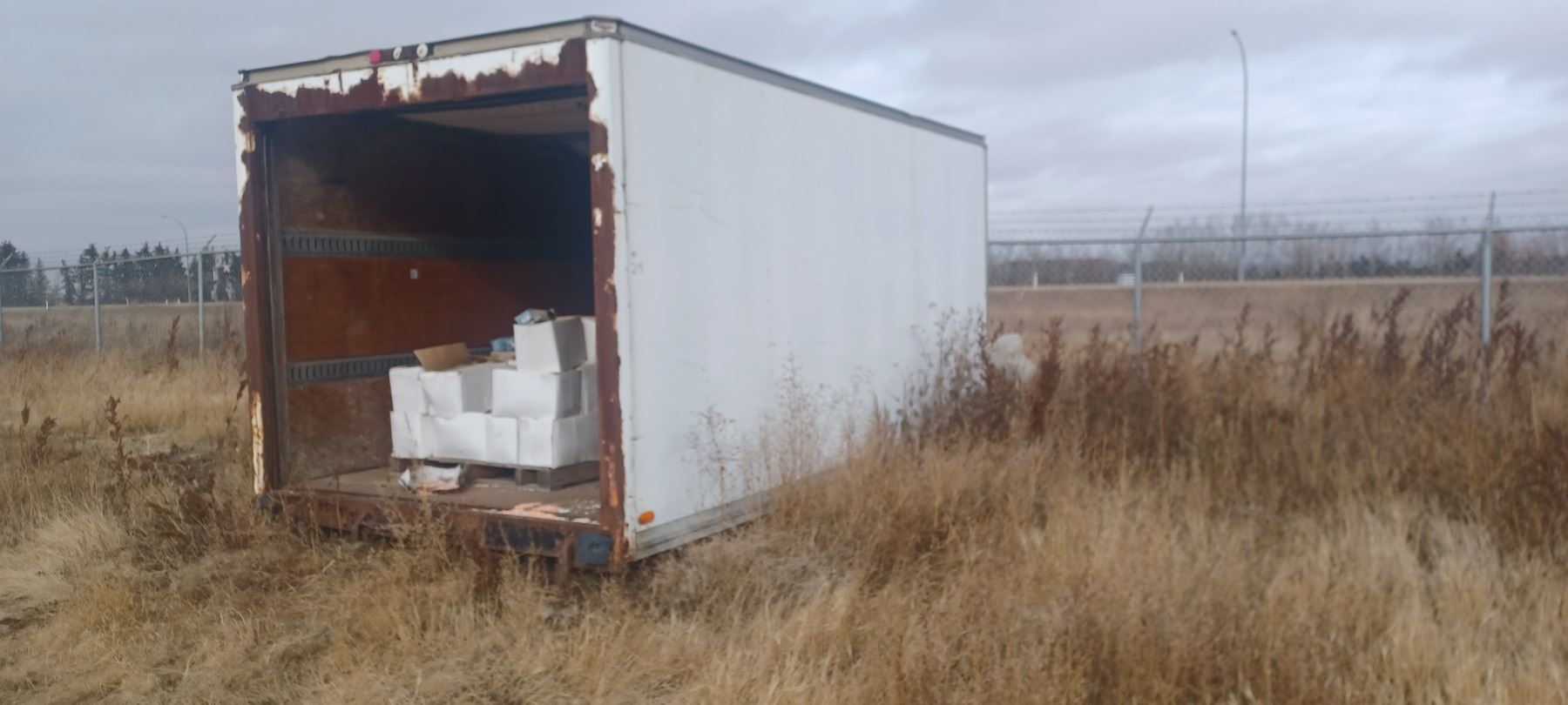 8 X16 FT VAN BODY WITH ROLLUP DOOR WHICH REQUIRES SOME REPAIRS TO SPRING