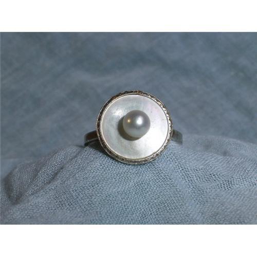 8 ct white gold ring with mother of pearl, and a real pearl.