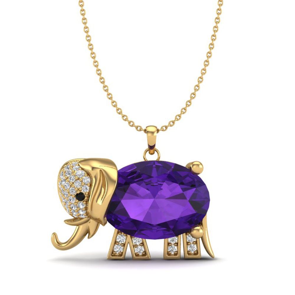 REF-33W3H - SKU: 22659 ---- 8 ctw Amethyst & Micro Pave Elephant VS/SI Diamond Necklace 10k Yellow Gold