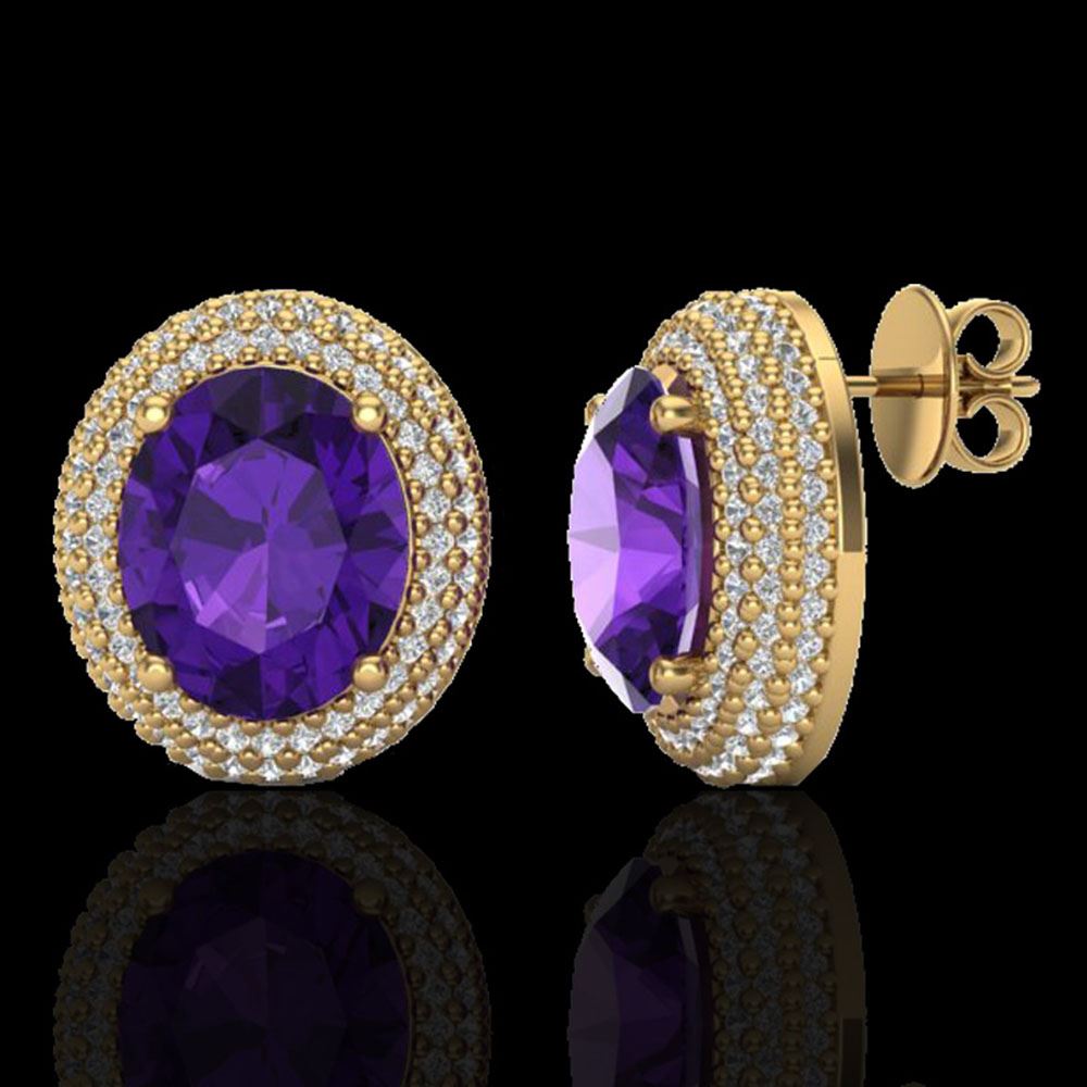 REF-150Y5X - SKU: 20213 ---- 8 ctw Amethyst & Micro Pave VS/SI Diamond Earrings 18k Yellow Gold