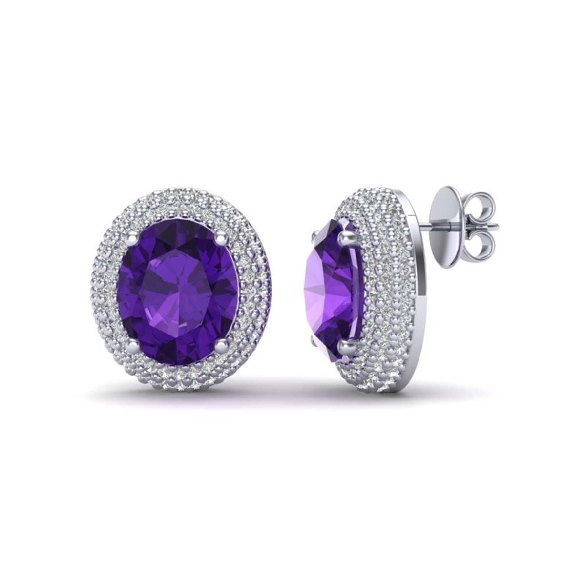 REF-150M5F - SKU:20212 ---- 8 ctw Amethyst & VS/SI Diamond Earrings 18K White Gold
