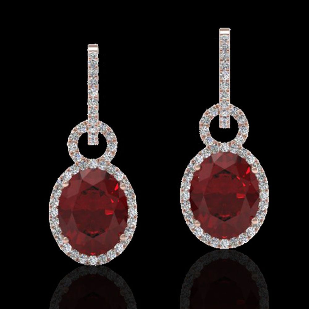 REF-100W2H - SKU: 22737 ---- 8 ctw Garnet & Micro Pave Halo VS/SI Diamond Earrings 14k Rose Gold