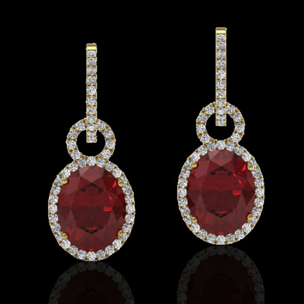 REF-100R2K - SKU: 22738 ---- 8 ctw Garnet & Micro Pave Halo VS/SI Diamond Earrings 14k Yellow Gold