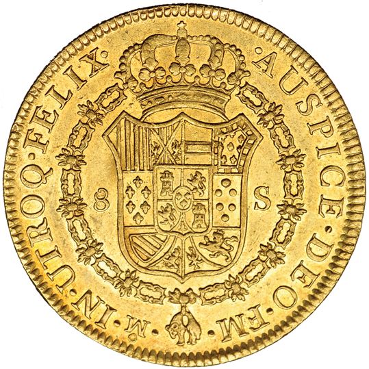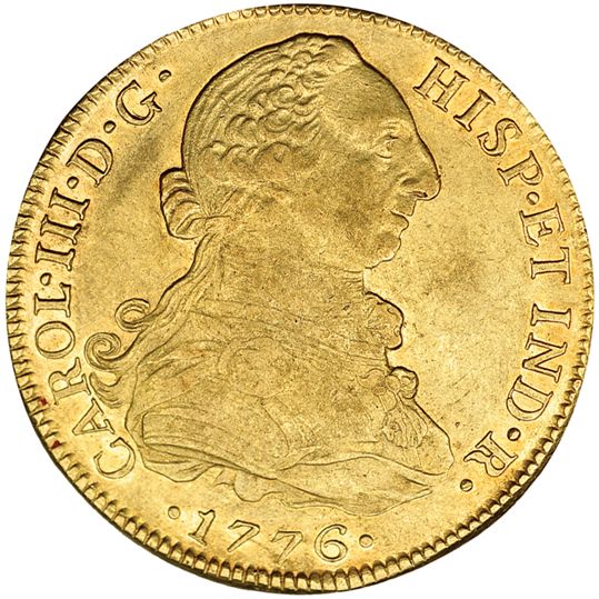 8 escudos. 1776. México. FM. Marca de ceca y ensayador invertidos. VI-1653. R.B.O. MBC+/EBC.