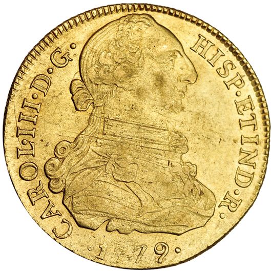 8 escudos. 1779. Lima. MJ. VI-1606. R.B.O. MBC+.