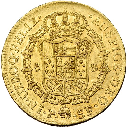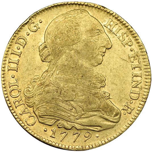 8 escudos. 1779. Popayán. SF. VI-1718. Pequeñas marcas. R.B.O. MBC+.