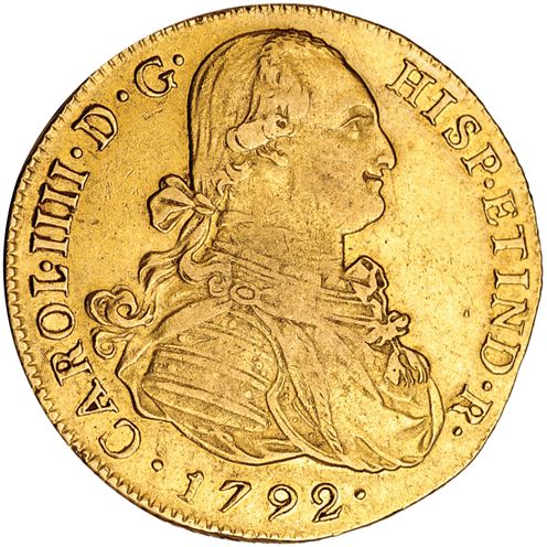 8 escudos. 1792. Lima. IJ. VI-1298. Hojita en el rev. MBC/MBC+.