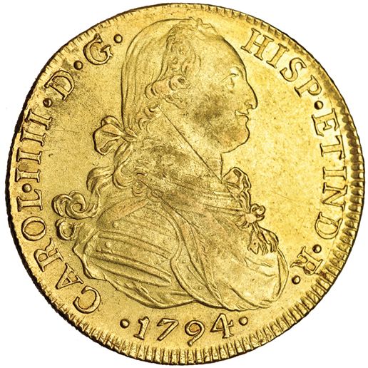 8 escudos. 1794. Lima. IJ. VI-1300. Rayitas de ajuste. R.B.O. MBC+.