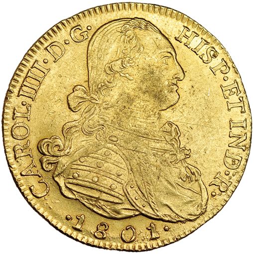 8 escudos. 1801. Nuevo Reino. JJ. VI-1359. Finas rayas en el rev. R.B.O. EBC-.