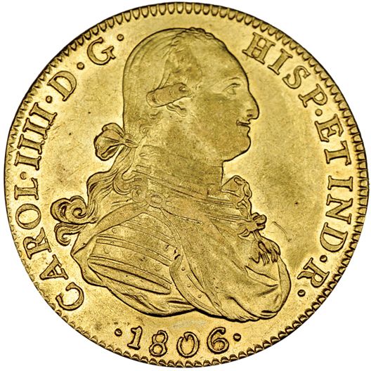8 escudos. 1806. México. TH. VI-1343. Mínima rayita en el anv. B.O. EBC.