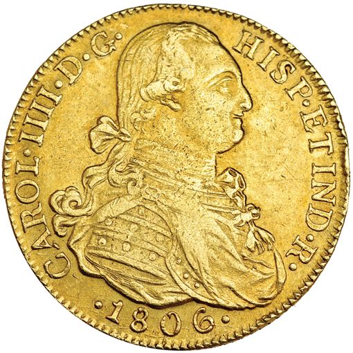 8 escudos. 1806. Nuevo Reino. JJ. VI-1364. Rayas de ajuste en el rev. MBC.