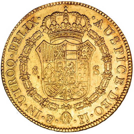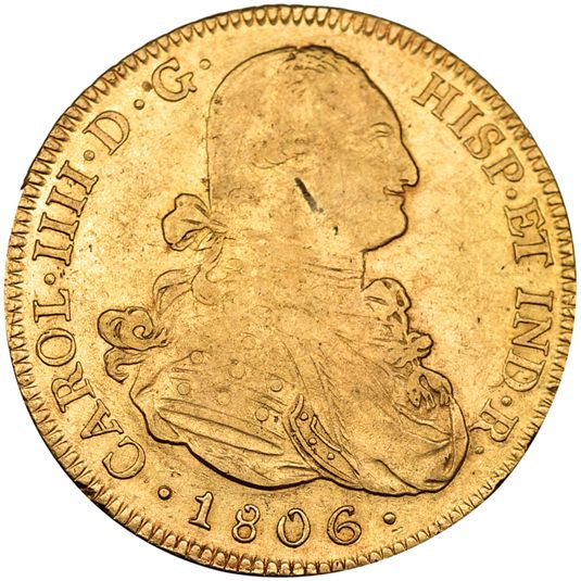 8 escudos. 1806. Potosí. PJ. VI-1409. Manchita en el anv. MBC-/MBC.