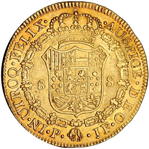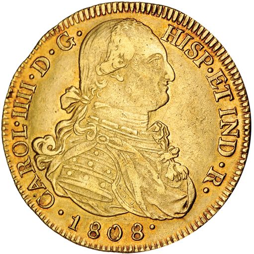 8 escudos. 1808. Popayán. JF. VI-1390. Pequeñas marcas. R.B.O. MBC+.